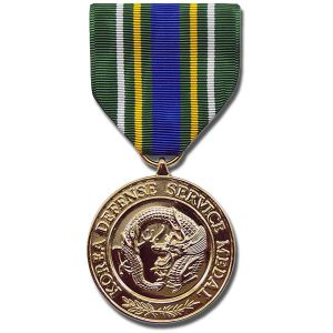 The Korea Defense Service Medal (KDSM) is authorized for those members of the U.S. military who have served duty in the Republic of Korea after the signing of the Korean Armistice Agreement in support of the defense of the Republic of Korea. To qualify for the Korea Defense Service Medal, a service member must have served at least thirty consecutive days in the Korean theater. The Korea Defense Service Medal is also granted for 60 non-consecutive days of service which includes reservists on annual training in Korea.