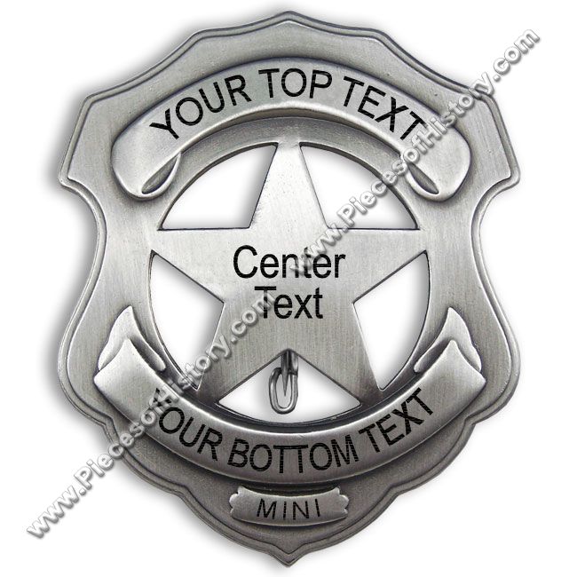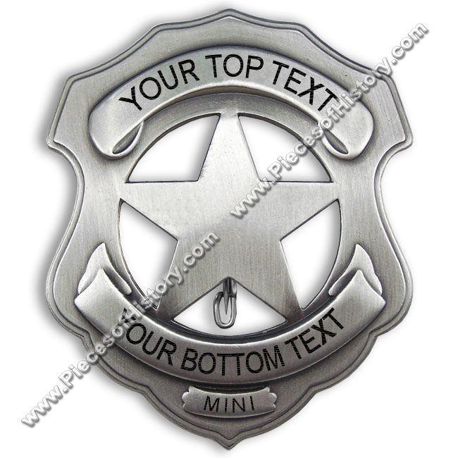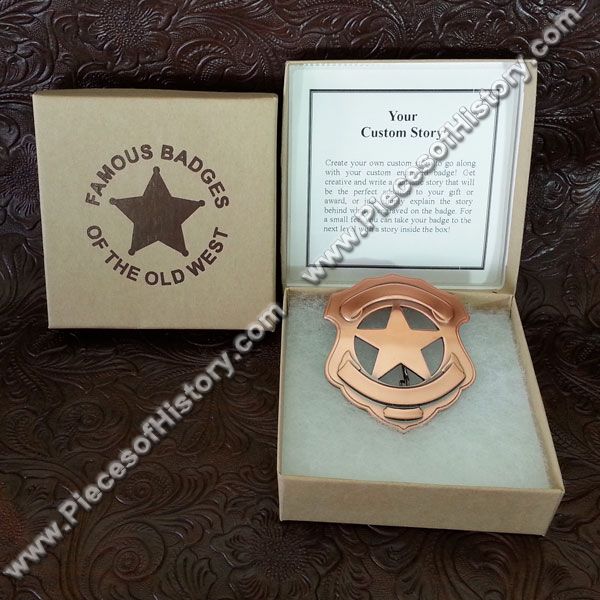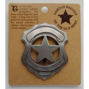 Each high quality Old West replica badge is crafted out of brass and steel. They are double-stamped then silver plated. Next, each Old West replica badge is individually hand finished for a unique antique look. Individual badge finishes may differ (lighter or darker) from image shown.