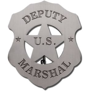 In the early days of the “Wild West“ Marshals were the only law available. These courageous men made their mark on history by pursuing outlaws who fled to lawless frontiers like Deadwood, South Dakota, Dodge City, Kansas, and Tombstone, Arizona. The two most recognizable U.S. Deputy Marshals are Wyatt Earp and Wild Bill Hickok. For the Gunsmoke enthusiast, this is the style of badge worn by the U.S. Deputy Marshals of the series.