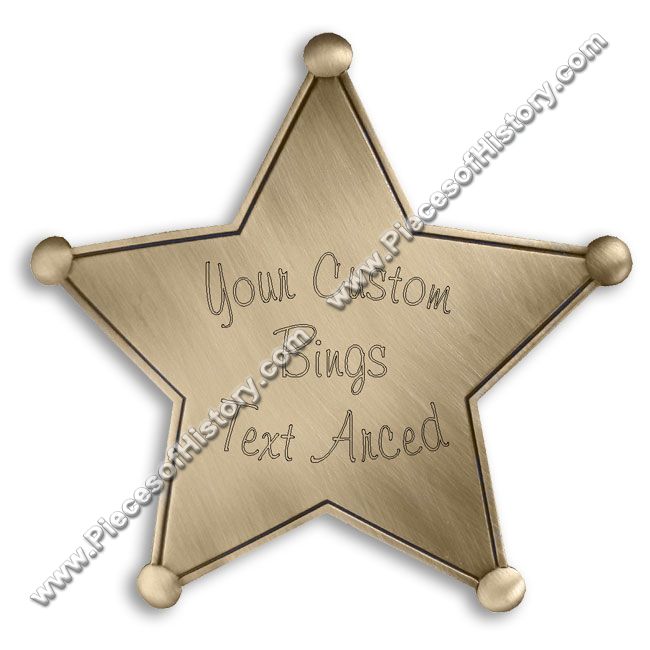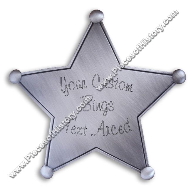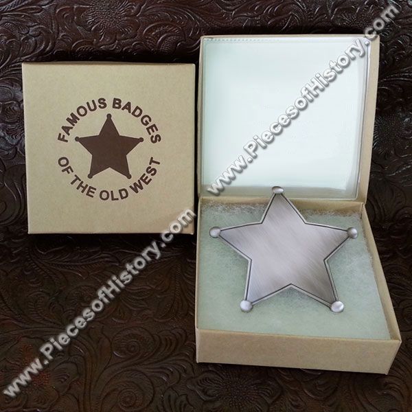 Each high quality Old West replica badge is crafted out of brass and steel. They are double-stamped then silver plated. Next, each Old West replica badge is individually hand finished for a unique antique look. Individual badge finishes may differ (lighter or darker) from image shown.