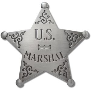 US Marshal Star Badge story inside the box: Virgil Earp wore such a badge as this during his time in Tombstone. Virgil was commissioned by Crawley P. Dake, U.S. Marshal for Arizona. After Virgil was ambushed and crippled in 1882, it was Dake who appointed Wyatt as a (temporary) Deputy U.S. Marshal to pursue his brother Morgan's killer.