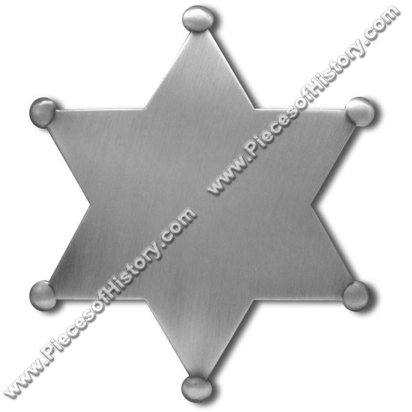 This high quality Old West replica badge is crafted out of brass. It is double-stamped then plated. Next, each Old West replica badge is individually hand finished for a unique antique look.