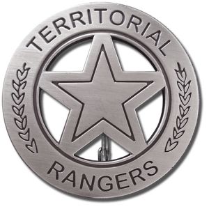 Territorial Rangers Badge story inside the box: The Arizona Territorial Rangers were formed in April 1860 by the Provisional Governor Dr. Lewis S. Owings with James Henry Tevis as their first Captain. The first Headquarters was in Piños Altos.